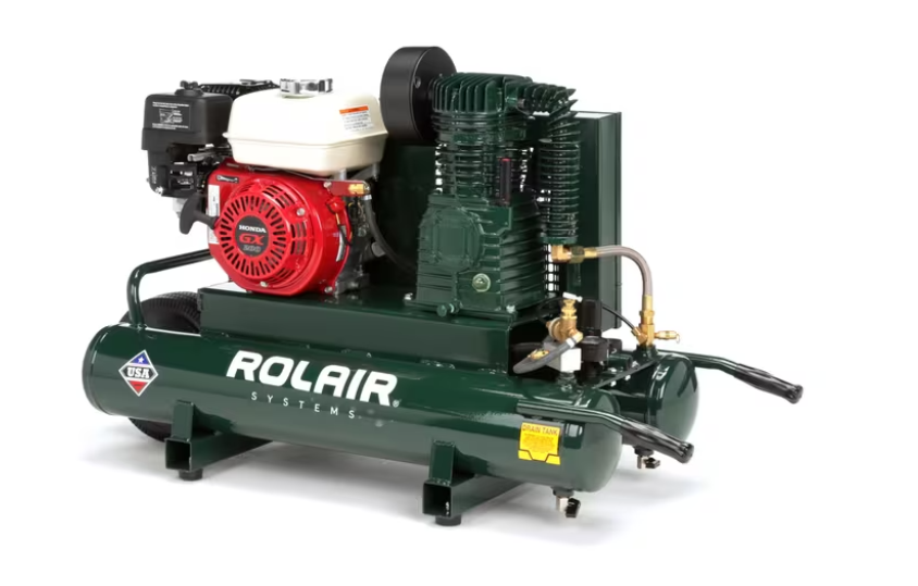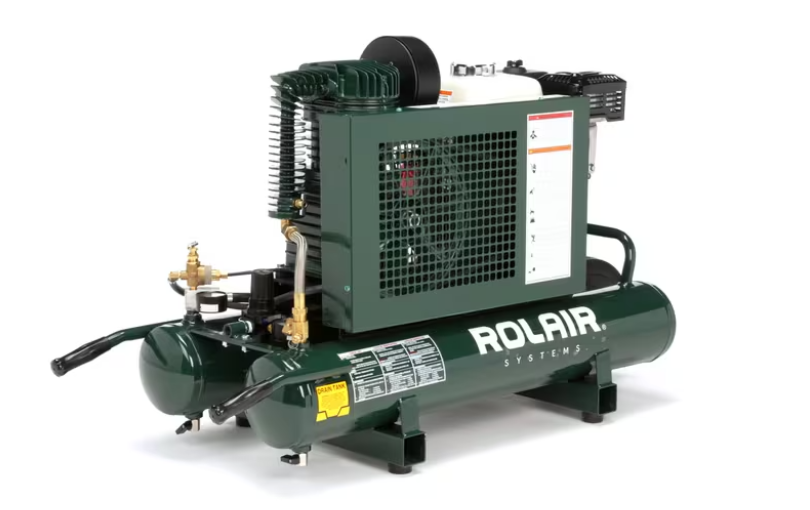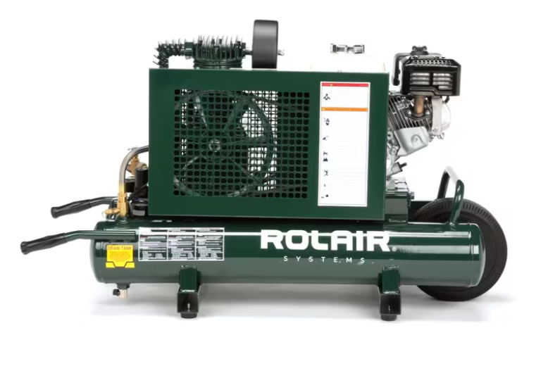 The Rolair 6590HK18, which was engineered as an upgrade to the 4090HK17, delivers up to 50% more CFM by comparison. Delivering 13.8 CFM @ 90 PSI, this unit incorporates a 196 cc (GX200) Honda engine with automatic idle-down, for increased fuel efficiency, and an atmospheric unloading system to prevent oil consumption.