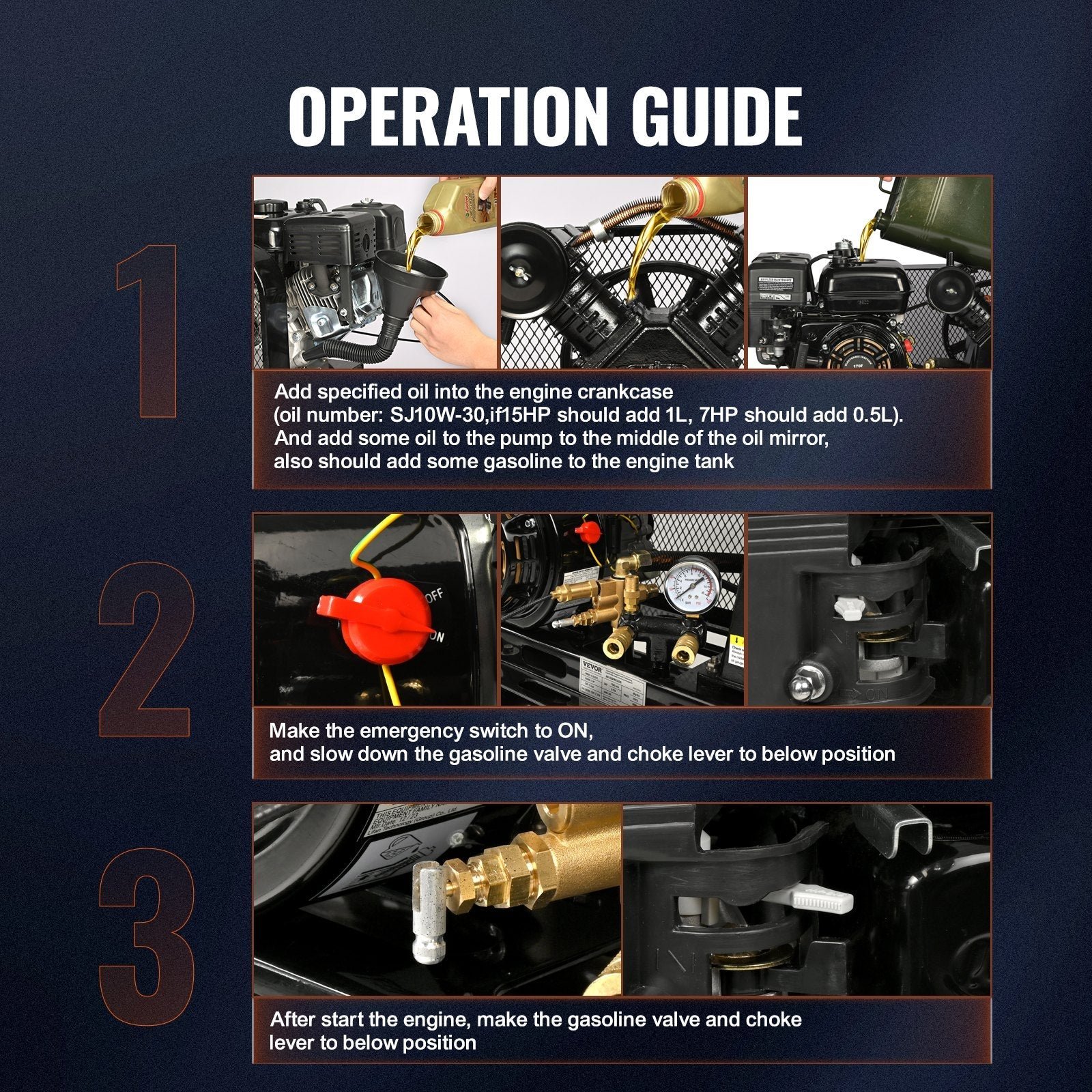 Vevor Air Compressor Gas Powered 9 CFM at 115 PSI 7 HP 13.2 Gallon Tank New